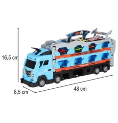 dwie zabawki w jednym – laweta do przewożenia samochodów i długi tor wyścigowy to idealne połączenie, które zapewnia rozrywkę na długie godziny