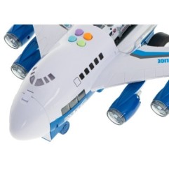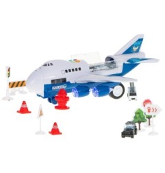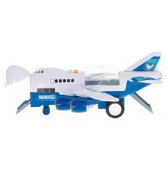Samolot, na swoim pokładzie może przetransportować dołączone do zestawu auta. Ma on również świecące diody LED umieszczone w silnikach.