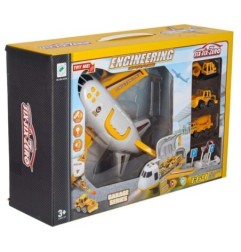 Zabawki, tak samolot, jak pojazdy są wyposażone w kółka, żeby móc bez problemu przemieszczać się po placu budowy.