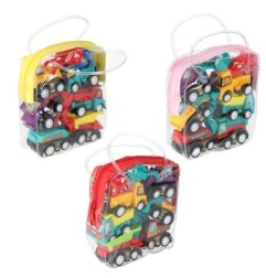 Zestaw sześciu małych samochodzików z napędem dla najmłodszych.