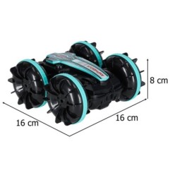 Model RC reagujący na gesty dłoni to nowoczesne rozwiązanie, które zainteresuje wielu fanów zdalnie sterowanych pojazdów. Zwrotna amfibia sprawnie porusza się po nierównym oraz podmokłym terenie – może jeździć po piasku oraz kałużach. Duże stabilne koła z bieżnikami bez problemu pokonują duże i małe przeszkody.