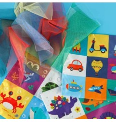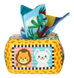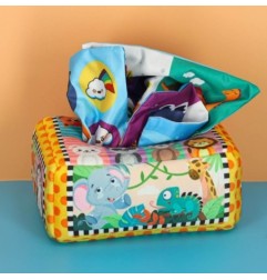 Stymulacja zmysłów: Zestaw zawiera 8 przezroczystych, kolorowych chusteczek oraz 3 tkaniny z różnymi wzorami, które pobudzają wzrok i dotyk dziecka, rozwijając jego percepcję sensoryczną. Zarówno ścianki pluszowego pudełka, jak i trzy wzorzyste chusteczki zostały wyposażone w szeleszczącą folię sensoryczną, która wydaje delikatny dźwięk podczas zgniatania. Ten dodatkowy element dźwiękowy pobudza ciekawość dziecka i wspiera rozwój zmysłu słuchu.
