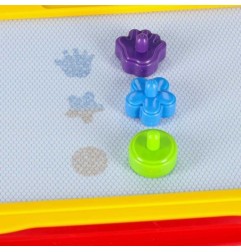 Tablica z zamocowanymi nóżkami umożliwia korzystanie z niej na siedząco przy zachowaniu odpowiedniej postawy. Posiada poręczny uchwyt, który pozwala ją przenieść w dowolne miejsce. Po odpięciu nóżek, tablicę można wziąć ze sobą w podróż. Zabawa znikopisem i stempelkami zapewni dziecku rozrywkę przez długi czas.