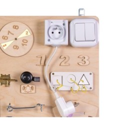 Ale czym dokładnie jest tablica manipulacyjna? To produkt, który posiada wiele różnorodnych elementów, najczęściej takich codziennego użytku – między innymi: gniazdko z wtyczką, włącznik światła, dzwonek rowerowy i wiele innych!