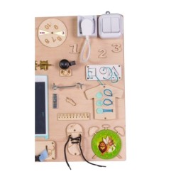 TABLICA MANIPULACYJNA DREWNIANA SENSORYCZNA 75X50CM