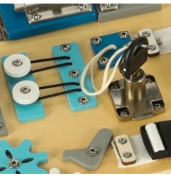 Podczas zabawy tablicą maluch będzie mógł przesuwać, wciskać, przekręcać i otwierać wszystkie elementy, dzięki czemu będzie ciągle rozwijać swoje umiejętności manualne, a także zaspokajać swoją ciekawość.