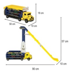 W formie lawety, zabawka może przewozić sześć małych autek umieszczonych na platformach, ułatwiając dziecku przewożenie samochodów z miejsca na miejsce. A gdy malucha najdzie ochota nie co bardziej dynamiczną zabawę, lawetę można przekształcić w imponujący tor wyścigowy, po którym auta będą się ścigać na dwóch równoległych trasach.