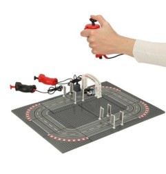 Zestaw składa się z ośmiu elementów, które po złożeniu tworzą tor z czterema zakrętami. Dwa autka poruszają się po torze, a dzieci sterują nimi za pomocą joysticków, precyzyjnie kontrolując prędkość pojazdów. Zabawa wspiera rozwój zdolności manualnych oraz koordynacji ręka-oko. Dodatkowo kontrolowanie prędkości poprawia refleks, szczególnie gdy samochód zbliża się do zakrętów, co wymaga szybkiej reakcji.