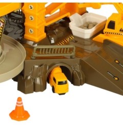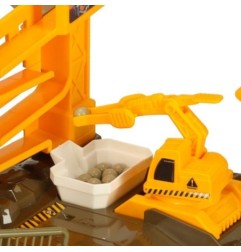 W zestawie znajdują się nie tylko auta, ale także inne elementy budowlane, w tym dźwig. Dzięki temu dziecko może w pełni wczuć się w rolę kierownika budowy, planując transport ładunków i kontrolując przebieg prac.