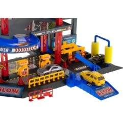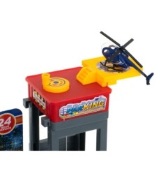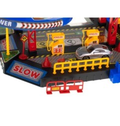 Na parterze konstrukcji znajduje się też rampa wjazdowa i liczne podjazdy. W zestawie są również znaki, barierki i słupki, które dodatkowo urozmaicą zabawę.
