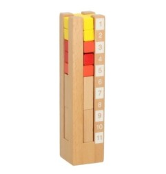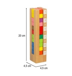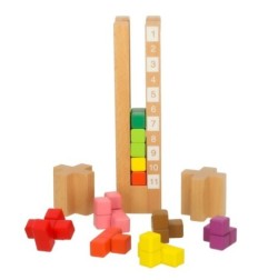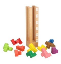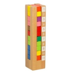 Klocki wykonane są z trwałego drewna, a ich gładkie krawędzie oraz intensywne kolory, uzyskane dzięki nietoksycznym farbom, gwarantują bezpieczną zabawę. To doskonała zabawka, która łączy naukę z zabawą, wspierając rozwój dziecka poprzez angażujące wyzwania.