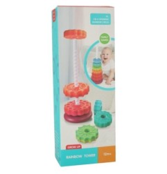 PIRAMIDKA SENSORYCZNA UKŁADANKA DLA NIEMOWLĄT - SPIRALA TĘCZOWE KOŁA ZĘBATE STEM