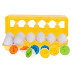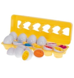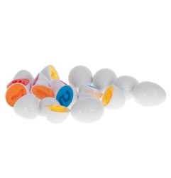 Zabawa jajkami pobudza logiczne myślenie i zachęca do aktywnego odkrywania. Dopasuj kształt, sprawdź kolor, połącz elementy - w ten sposób naturalnie rozwija się umiejętność rozpoznawania kształtów. Zabawka wspiera naukę kolorów oraz rozpoznawanie barw, zamieniając proces nauki w angażującą grę, podczas której dziecko ćwiczy z radością i ciekawością.