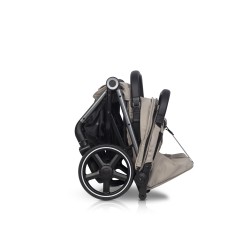 Złóż wózek jedną ręką w kilka sekund! ECHO stoi samodzielnie po złożeniu, a tapicerka nie dotyka ziemi, co chroni ją przed zabrudzeniem. Automatyczna blokada ułatwia przenoszenie.