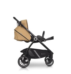 W dolnej części wózka zamontowany został bardzo duży kosz na zakupy lub inne przedmioty przydatne podczas codziennych spacerów. Rączka wózka oraz barierka zabezpieczająca dziecko zostały obszyte modną i praktyczną skórą ekologiczną.