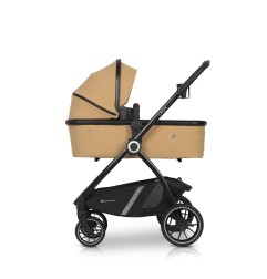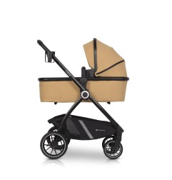 Opcjonalna gondola pozwala stworzyć kompaktowy wózek wielofunkcyjny 2w1. Gondola posiada funkcję składania na płasko, dzięki czemu bez problemu umieścisz ją w bagażniku samochodu, gdy dziecko znajduje się w foteliku samochodowym. Plastikowe stopki pozwalają na postawienie gondoli na ziemi bez ryzyka ubrudzenia tapicerki. Uchwyt do przenoszenia obszyty został praktyczną skórą ekologiczną. Gondola posiada dużą budkę z dodatkową rozpinaną sekcją pozwalającą osłonić dziecko przed nisko operującym słońcem. Wnętrze oraz materacyk wykonane zostało z przyjemnej w dotyku bawełny w jasnoszarym kolorze.
