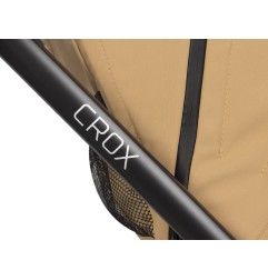 Siedzisko wózka spacerowego CROX posiada 3-stopniową regulację oparcia od pozycji w pełni leżącej do pozycji w pełni siedzącej. Po rozłożeniu oparcia na płasko uzyskujemy płaszczyznę do spania o imponującej długości 90 cm. Budka przeciwsłoneczna jest duża i posiada dodatkową rozpinaną sekcję oraz daszek przeciwsłoneczny. Moduł siedziska wykonany został z plastiku i posiada system wentylacji oparcia.