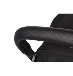 Rączka wózka i barierka zabezpieczająca dziecko zostały obszyte stylową skórą ekologiczną, która zapewnia większy komfort i pewniejszy chwyt. Skóra posiada modny wzór perforacji oraz wytłoczony logotyp, co nadaje wózkowi sportowego charakteru.