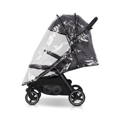 W zestawie z wózkiem znajduje się pełna folia przeciwdeszczowa z wywietrznikami na wysokości twarzy dziecka, wygodny pokrowiec na nóżki (ocieplacz), pojemy koszyk oraz praktyczny pokrowiec transportowy, który pomieści złożony wózek razem z kołami.