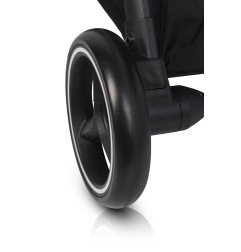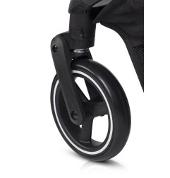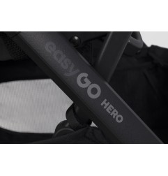 Tapicerka wózka spacerowego EASYGO HERO wykonana została z gładkich i przyjemnych w dotyku tkanin wysokiej jakości w modnych wyrazistych kolorach charakterystycznych dla stylu marki. Metalowe emblematy w kolorze czarny mat, bryzgoszczelny logowany suwak w budce oraz wykończenia z czarnej matowej skóry ekologicznej nadają wózkowi sportowego charakteru.