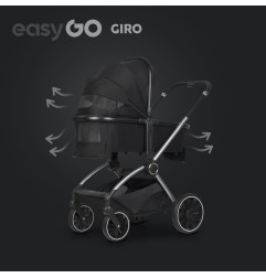 GIRO marki EASYGO jest nowoczesnym wielofunkcyjnym wózkiem dziecięcym przeznaczonym dla dzieci od narodzin do 22 kg (lub do wieku 4 lat). Posiada wszystkie cechy i funkcje, które charakteryzują dobry wózek wielofunkcyjny, a jednocześnie jego cena nie zrujnuje domowego budżetu.