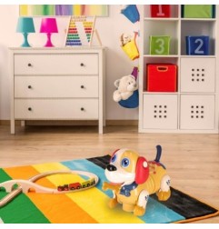 Maskotka pomaga rozwijać małą motorykę dziecka oraz koordynację wzrokowo-ruchową. Efekty świetlne i dźwiękowe wspierają integrację sensoryczną, a także wzmacniają kompetencje społeczne u malucha. Piesek wypowiada zdania w języku angielskim, dzięki czemu skutecznie łączy naukę z zabawą.