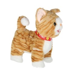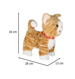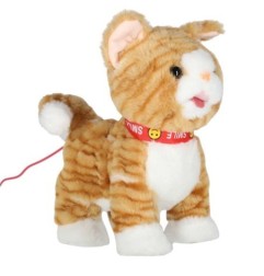 Interaktywny kotek na smyczy będzie pluszowym towarzyszem zabaw Twojego dziecka. Działa na baterie AA – po ich włożeniu kotek jest gotowy na spacer! Włącznik umieszczony na smyczy sprawi, że kotek ruszy do przodu w rytm wesołej piosenki. Kotka można również pogłaskać – zwierzątko zareaguje miauczeniem i ocieraniem się.