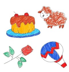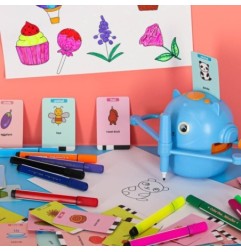 W zestawie znajduje się aż 100 kart z obrazkami przedstawiających m.in. zwierzęta, potrawy, figury, pojazdy i rośliny. Dzięki nim robot rysuje ilustracje warstwa po warstwie, ucząc dziecko jak tworzyć kształty, utrzymywać proporcje i zaplanować kompozycję. To doskonały trening koncentracji i skupienia.