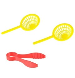 12 butelek żelu w różnych kolorach 24 foremki do tworzenia figurek 1 słoiczek i 1 woreczek z mleczanem wapnia 4 talerzyki i 4 tacki do serwowania 2 sitka, 2 szczypce do wyjmowania 1 garnuszek z pokrywką 1 interaktywna podstawka pod garnek 1 durszlak 2 widelczyki, 2 łyżeczki, 2 nożyki, 2 łopatki instrukcja obsługiParametry techniczne: