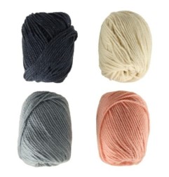 Zestaw zawiera cztery włóczki w klasycznych barwach: kremowy, szary, granatowy i pomarańczowy. Te kolory doskonale się uzupełniają, co daje możliwość tworzenia kontrastowych lub harmonijnych projektów DIY.