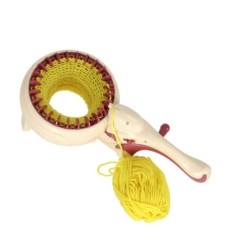 Obsługa maszyny jest bardzo prosta! Po pierwsze należy włóczkę w wybranym kolorze zapleść na maszynę, a następnie cały przyrząd wprowadzić w ruchu. Haczyki wewnątrz koła będą same łapać włóczkę i zaplatać ją. Po pewnym czasie z tak prostego szydełkowania powstanie piękne dzieło, na przykład szalik!