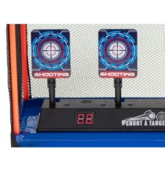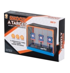 W tarczę można strzelać z pistoletów na piankowe strzałki czy kulki. Posiada ona efekty świetlne i dźwiękowe uatrakcyjniające zabawę. Po trafieniu możemy usłyszeć dźwięk tłuczonego szkła lub oklaski. Dodatkowo na tarczy został umieszczony dwucyfrowy licznik punktów. Każdy cel po trafieniu kładzie się do tyłu. Po zestrzeleniu trzech tarcz otrzymujemy 1 punkt, po czym wszystkie podnoszą się automatycznie do góry.