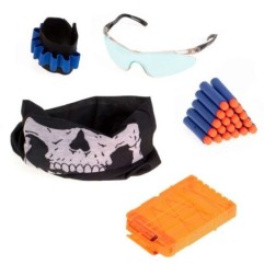 20 strzałek i dwa magazynki(plastikowy i w formie opaski na rękę) uatrakcyjnią zabawę i sprawią że będziesz miał zapas strzałek zawsze przy sobie.