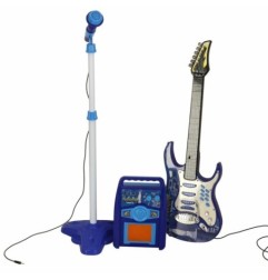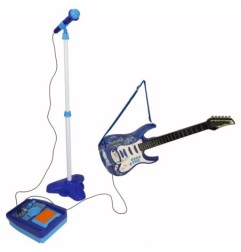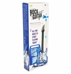 Gitara elektryczna z akcesoriami to idealna zabawka dla małego muzyka marzącego o wielkiej scenie. Zestaw zawiera gitarę, wzmacniacz i mikrofon na regulowanym statywie.