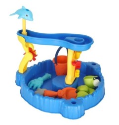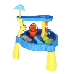 Czy da się połączyć ze sobą fontannę i piaskownicę? Jak najbardziej – stolik wodny dla dzieci jest idealnym tego przykładem. Do stolika dołączono łopatkę, grabki, wiaderko, konewkę i foremki, które uświetnią zabawę w domu oraz na plaży.
