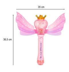 Podaruj dziecku maszynkę do baniek w kształcie różdżki ze skrzydełkami, która po naciśnięciu jednego guzika daje salwę wystrzelonych baniek. Chmura tęczowych baniek mydlanych unosi się w powietrzu, zamieniając zwykłą chwilę w magiczne przedstawienie. Dzięki prostemu mechanizmowi, robienia baniek mydlanych staje się łatwe, bezpieczne i efektowne, a dzieci mogą godzinami cieszyć się zabawą.