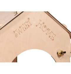Aktywny Domek "SWEET HOME" wyposażony w tablicę magnetyczno- kredową (wymiar tabl.: szer.:55 x wys.: 86 cm) oraz stolik (dł: 76cm, szer.: 45 cm) do własnego montażu. Wyposażenie: komplet literek magnetycznych, 4 szt. cottonów, białą kredę oraz gąbkę. Zestaw nie zawiera baterii (2 szt. AA).
