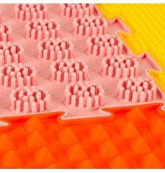 Nasza oferowana mata sensoryczna to gotowy zestaw, który można łatwo rozbudować o kolejne moduły sensoryczne. Puzzle łączą się w różnych konfiguracjach - dzięki temu stworzysz kontrastową matę sensoryczną lub dynamiczną ścieżkę sensoryczną dopasowaną do potrzeb dziecka.
