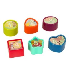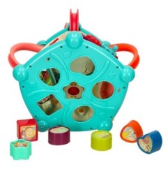 Sorter kształtów i sześć kolorowych klocków czeka na idealne dopasowanie zgodnie z kształtami. To doskonała zabawa dla małych paluszków, która rozwija zdolności poznawcze i logiczne myślenie.