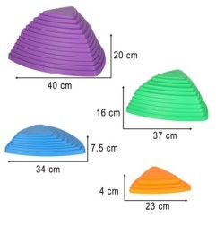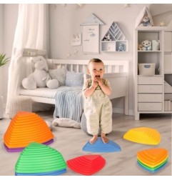 Zestaw zawiera wszystko, czego potrzeba do ułożenia dynamicznej, kolorowej ścieżki sensorycznej dla dzieci - kamienie można dowolnie ustawiać, tworząc proste lub skomplikowane tory. Dziecko samo może decydować jak wygląda jego trasa, co wzmacnia poczucie sprawczości i zachęca do eksploracji. Zabawa z kamieniami balansującymi może przybrać różne formy - od klasycznego toru przeszkód po emocjonującą grę „podłoga to lawa”.