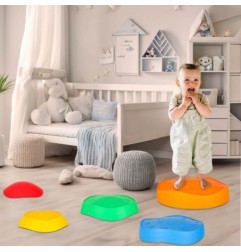 Zestaw został zaprojektowany z myślą o wspieraniu terapii SI (Integracji Sensorycznej), w której kluczowe znaczenie ma koordynacja ruchowa, różnorodność faktur i świadomość przestrzenna. Każdy z pięciu kamieni balansujących wyróżnia się nie tylko barwą, ale też kształtem i strukturą powierzchni, co stymuluje receptory czuciowe i pomaga dziecku rozpoznawać różnice dotykowe.