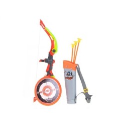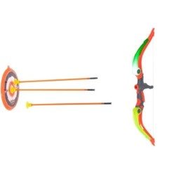 Zabawkowy łuk jest idealną rozrywką dla dzieci, które marzą o tym, by wcielić się w rolę łucznika. Łuk naciągany jest przy pomocy gumy, a każda ze strzał zakończona jest gumową końcówką.