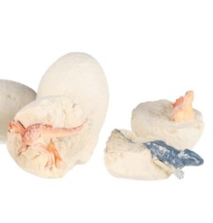 To idealny zestaw archeologiczny dla dzieci, które marzą o tym, by zostać odkrywcami. Każde z 12 jajek do odkrywania dinozaurów kryje tajemniczą skamielinę dinozaura, gotową do odkrycia. Dziecko, niczym mały archeolog wykopaliska, przy pomocy zestawu narzędzi archeologicznych - dłutka i pędzelka - odkopuje swoje znalezisko, ucząc się cierpliwości, koncentracji i precyzji.
