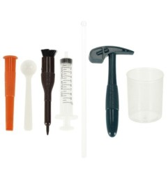 młotek, dłuta oraz pędzelek, dzięki którym młody odkrywca może