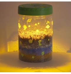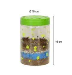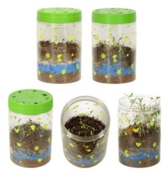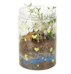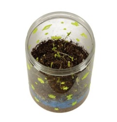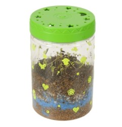 Przezroczysty plastikowy pojemnik z otworami wentylacyjnymi służy do zasiania dołączonych ziarenek. Zestaw zawiera ziemię i kolorowe kamienie, które należy umieścić w pojemniku według instrukcji. Pokrywka terrarium posiada diody LED, które działają zarówno jako lampka nocna, jak i dodatkowe źródło światła, które sprzyja wzrostowi roślin.