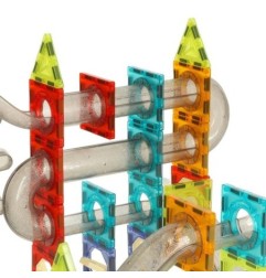 Obserwowanie przemieszczających się kulek nie tylko daje poczucie spełnienia z powodu działającego toru, ale również stymuluje zmysł wzroku. A zabawa klockami ćwiczy wiele zdolności, przede wszystkim: wyobraźnię przestrzenną, zdolności manualne, logiczne myślenie, rozumowanie przyczynowo-skutkowe.