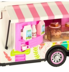 Kamper ma w zestawie mini akcesoria do samodzielnego złożenia. Mini stoliki, parasolki oraz krzesełka przypominają aranżację prawdziwej strefy gastronomicznej. Kolorowe światła i dźwięki podkreślają atmosferę dobrej zabawy.