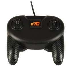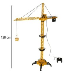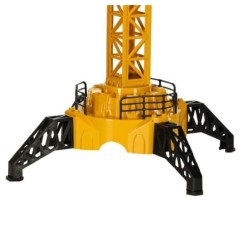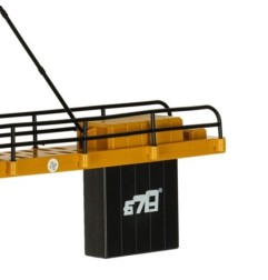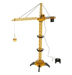 Żółto czarny dźwig zdalnie sterowany za pomocą pilota dołączonego do zestawu.